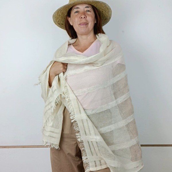 Envuelve tus espacios con la calidez y el encanto natural de nuestra manta de gasa arpillera, una pieza única confeccionada con fibras naturales de alta calidad. Su textura ligera y suave aporta un toque rústico y elegante, ideal para complementar la decoración de tu hogar o realzar ambientes en eventos especiales.