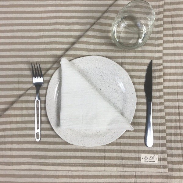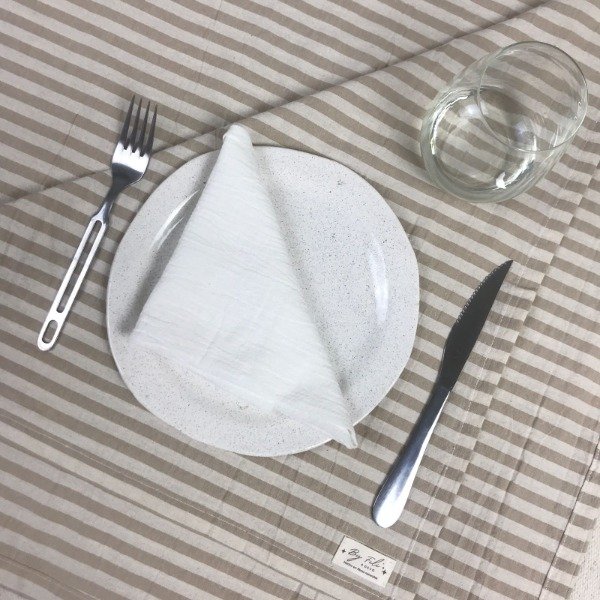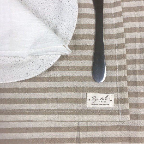 Mantel Tussor Premium Rayado Descrude y Arena - 3 Medidas