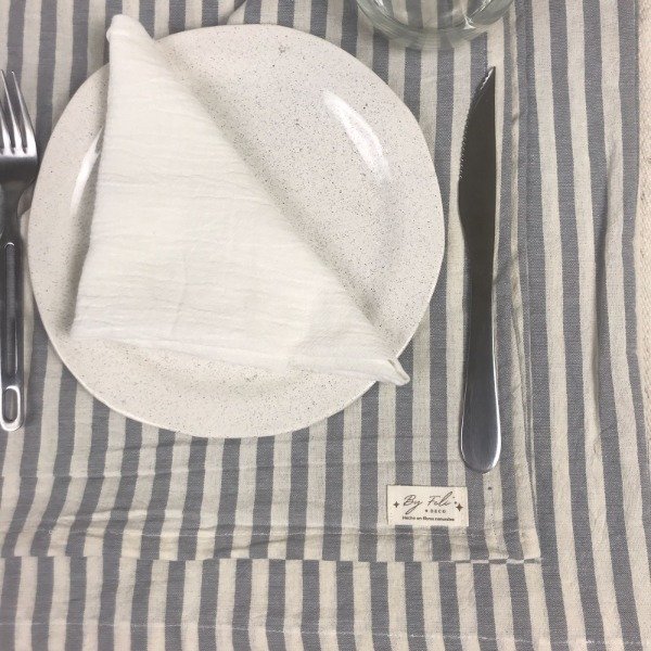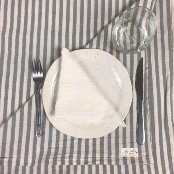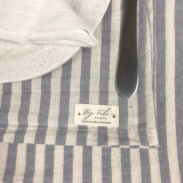 Mantel Tussor Premium Rayado Descrude y Gris claro - 3 Medidas