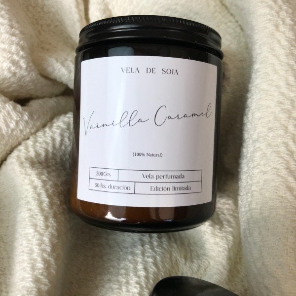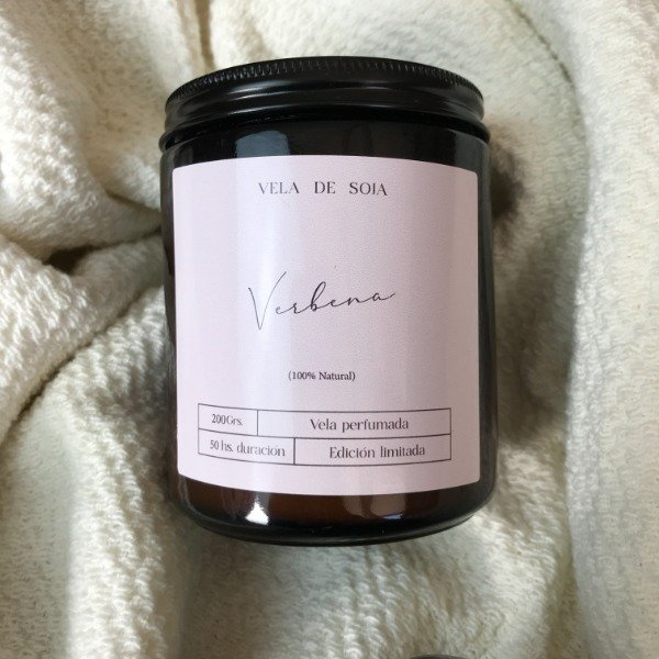 Vela Ambar de 200g hecha de cera de soja con una duración de +50hs